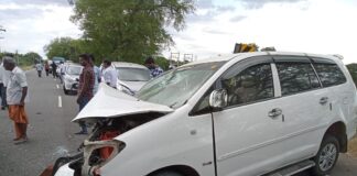 மதுரை அருகே நேருக்கு நேர் மோதிய கார்கள் 3 பேர் பலி – 6...