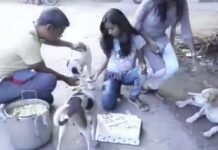 நாய்களுக்கு கேக் வெட்டி நாய்கள் தினம் கொண்டாடிய நாயகி