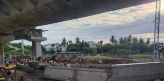 பாதிவேலை முடிந்த நிலையில் பாலம் இடிந்து ஒருவர் பலி