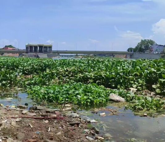 மதுரை கல்பாலத்தில் வைகை நீரை தடுக்கும் ஆகாய தாமரை