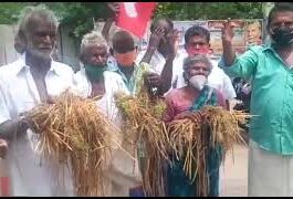 மதுரை கலெக்டர் அலுவலகத்தில் நெற்பயிருடன் விவசாயிகள் போராட்டம்