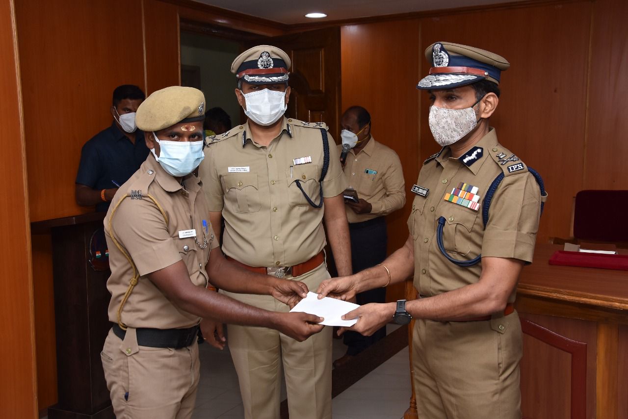 அதனைத் தொடர்ந்து, மதுரை மாநகரில் ஆயுதம் ஏந்திய இருசக்கர ரோந்து காவலர்களின் சிறப்பான பணியை பாராட்டி அவர்களுக்கு வெகுமதி வழங்கி பாராட்டு வழங்கினார்.