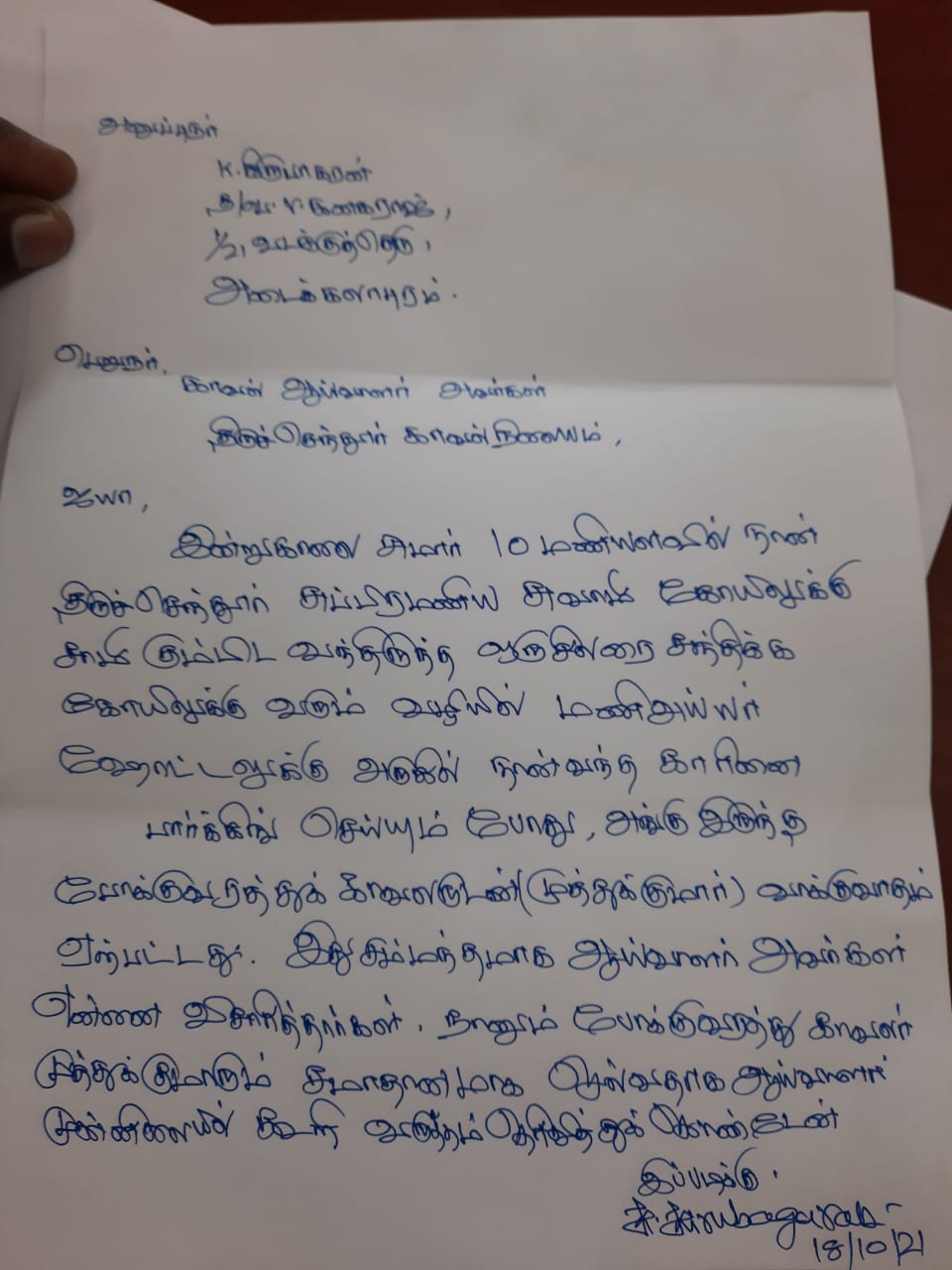 இந்நிலையில் போலீசார் நடத்திய விசாரணையில் அமைச்சர் அனிதா ராதாகிருஷ்ணன் பிஏ கிருபா அளித்த வாக்குமூலத்தில், ‘நேற்று காலை வாகனத்தை பார்க் செய்வது தொடர்பாக ஏட்டுடன் வாக்குவாதம் நடந்தது. இப்போது நாங்கள் சமாதானமாகப் போய் விட்டோம்’ என்று குறிப்பிட்டுள்ளார்.