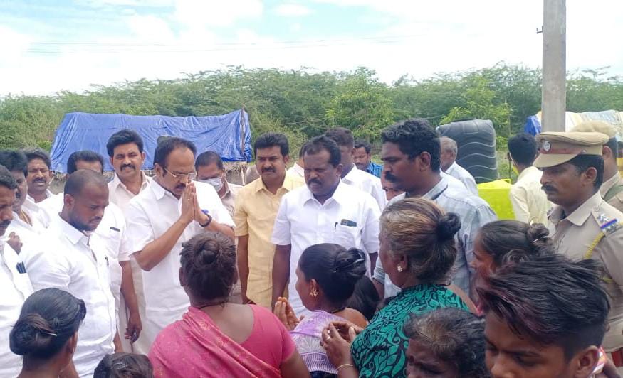 . தமிழக முதல்வரின் உத்தரவின் பேரில், தொழில்துறை அமைச்சர் தங்கம் தென்னரசு நரிக்குறவர் காலனிக்கு வந்து ,பாதிக்கப்பட்ட மக்களை நேரில் சந்தித்து ஆறுதல் தெரிவித்தார். மேலும், அடிப்படை தேவைகள் குறித்து கேட்டறிந்தார்.