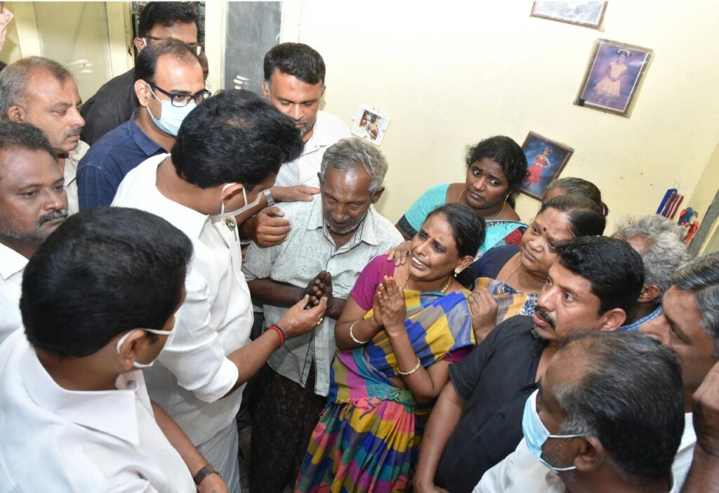 ஆம்புலன்ஸ் மூலம் கொண்டு வரப்பட்ட அவரது உடலை இறங்கிய போது மாணவியின் பெற்றோர் கதறி அழுது துடித்தனர். இது அங்கிருந்த அனைவரையும் கண்ணீரில் மூழ்க வைத்தது. முன்னதாக அமைச்சர்கள் மகேஷ் பொய்யாமொழி , செந்தில் பாலாஜி உள்ளிட்டோர் நேரில் சென்று மாணவியின் பெற்றோருக்கு ஆறுதல் தெரிவித்தனர்.