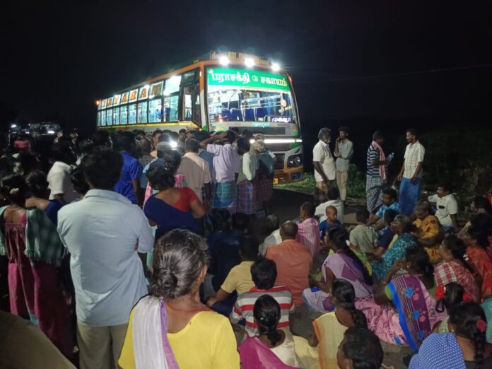 எனவே, அப் பகுதியை சேர்ந்த பெண்கள் உள்ளிட்ட நூற்றுக்கும் மேற்பட்டோர் விபத்தை ஏற்படுத்திய பேருந்தை சிறை பிடித்து சாலை மறியல் போராட்டத்தில் ஈடுபட்டனர்.