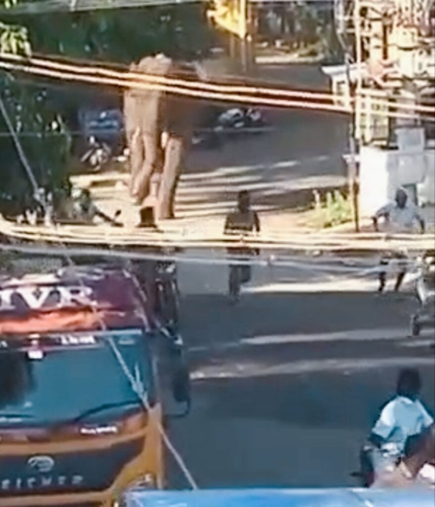வனத்துறையினர் யானையை பின் தொடர்ந்து பொதுமக்களை பாதுகாப்பாக இருக்குமாறு எச்சரிக்கை விடுத்து வருகின்றனர்