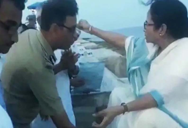 மேற்கு வங்கத்தில் உள்ள திகா எனும் பகுதியில் கடற்கரையோரம் நடைபெற்ற நிகழ்ச்சியொன்றில் கலந்து கொண்ட மம்தா பானர்ஜி, அங்கு சிலருக்கு இனிப்புகள் வழங்கியுள்ளார். அப்போது மம்தாவை நோக்கிச் சென்ற அம்மாநிலத்தைச் சேர்ந்த காவல்துறை ஐ.ஜி.யான ராஜீவ் மிஸ்ரா என்பவர், மம்தாவின் பாதங்களைத் தொட்டு வணங்கியதாக கூறப்படுகிறது.