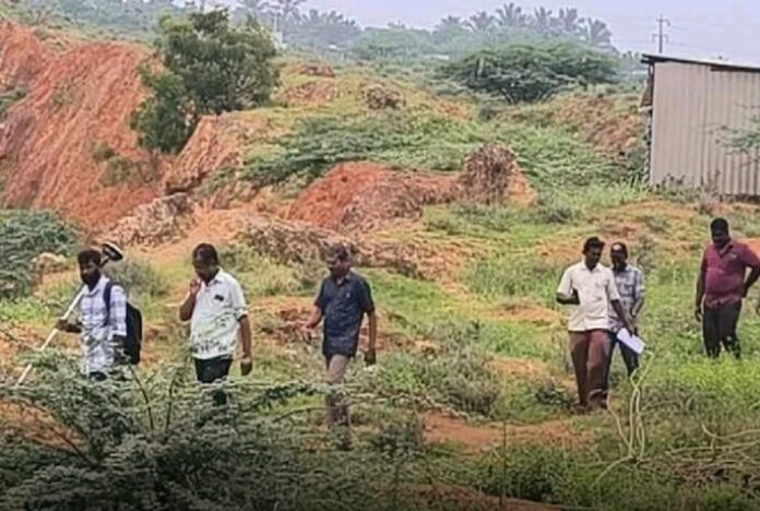 கோவில்பட்டியில் அருள்மிகு செண்பகவல்லி அம்மன் திருகோவிலுக்கு சொந்தமான கதிரேசன் திருக்கோவில்நிலங்கள் ஆக்கிரமிப்பு செய்யப்பட்டுள்ளன என்று கதிர்வேல் முருகன் கோவிலில் ஆக்கிரமிப்பு செய்யப்பட்டுள்ள நிலங்களை மீட்கும் பணியில் தாசில்தார் நம்பிராயர் தலைமையில் நில அளவையர்கள் அளவீடு செய்யும் பணியில் ஈடுபட்டு வருகின்றனர்