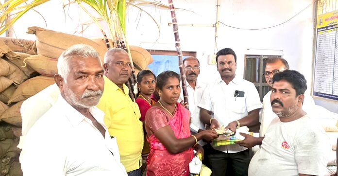 கிளைச் செயலாளர்கள் மிக்கேல் சுந்தர்ராஜ், பூல் பாண்டி, முன்னிலையில் பரிசுத்தொகுப்பு வழங்கப்பட்டது. .