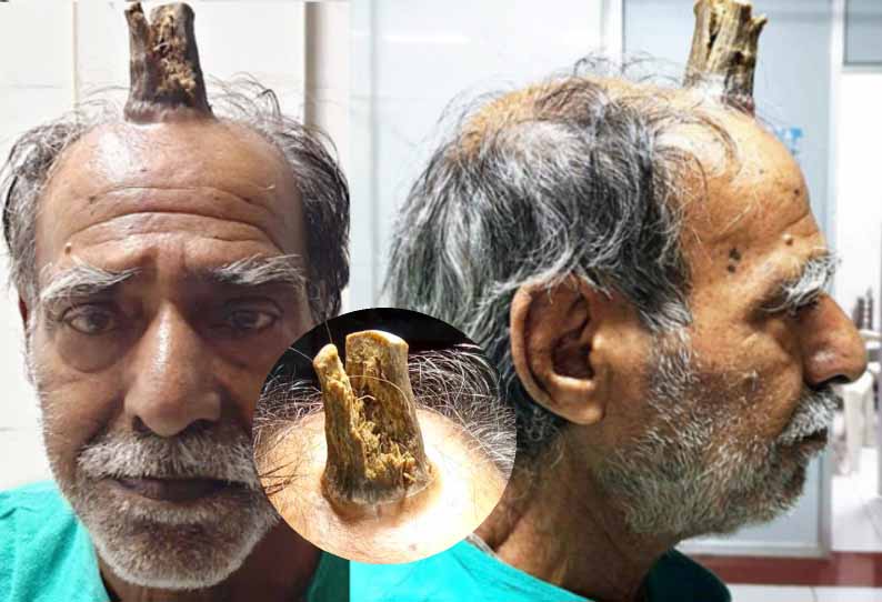 மத்தியப்பிரதேசத்தின் ரஹ்லி கிராமத்தில் வசித்து வருபவர் விவசாயி ஷ்யாம் லால் யாதவ்( வயது 74) அவருக்கு 2014-ம் ஆண்டு தலையில் அடிபட்டது. அதன் பின் நகம் போன்ற ஒன்று தலையில் முளைக்கத் தொடங்கியது.