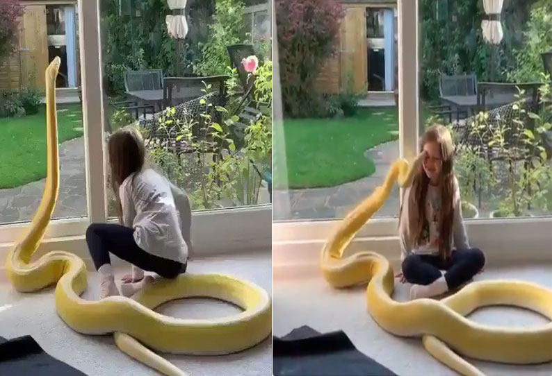 அந்த சிறுமி எந்தவித அச்சமும் இன்றி குலுங்கி, குலுங்கி சிரிக்கிறாள். பின்பு அந்த பாம்பு அங்கிருந்து மெல்ல நகர்கிறது. மஞ்சள் நிறத்தில் அச்சமூட்டும் வகையில் அந்த பாம்பு ஏறக்குறைய 10 அடிக்கும் கூடுதலாக உள்ளது. அதனை சிறுமி கட்டியணைத்து கொள்கிறாள். செல்ல பிராணியாக அதனை வளர்த்து வருவதற்கு எதிராக ஊடகங்களில் பலரும் தங்களது கண்டனங்களை பதிவிட்டு வருகின்றனர். சிலர் அச்சத்துடனும், சிலர் ஆச்சரியத்துடனும் வீடியோவுக்கு விமர்சனங்களை தெரிவித்து வருகின்றனர். இந்த வீடியோ பதிவை 10 கோடியே ஒரு லட்சம் பேர் கண்டுள்ளனர்.