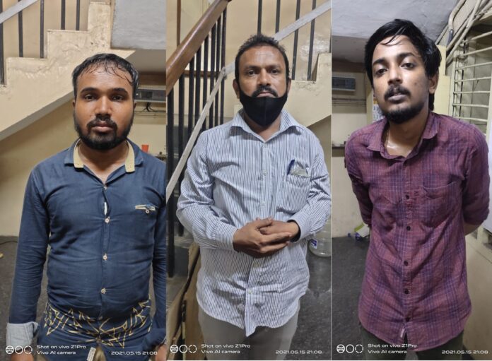 அவர்கள் கே.கே நகர் பகுதியை சேர்ந்த மருந்து விற்பணையாளரான ஆதித்யன் ( 24 ), பாரிசில் மருந்து கடை வைதது நடத்தி வரும் பட்டாளம் பகுதியைச் சேர்ந்த ராஜ்குமார் ( 27 ), அயனாவரம் பகுதியை சேர்ந்த ஆயிரம் விளக்கில் உள்ள ஒரு மருந்தகத்தில் வேலை பார்க்கும் சையத் அம்ஜித் ( 38) என்பதும், மூவரும் சேர்ந்து மருந்து பாட்டில்களை திருடி வந்து கள்ளத்தனமாக அதிக விலைக்கு விற்று லாபம் பார்க்க முயற்சித்ததும் தெரிய வந்தது .