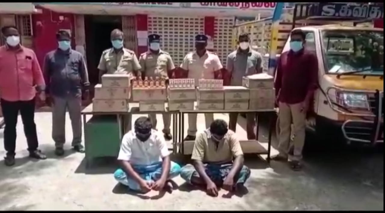 இதனை அடுத்து வாகனத்தில் வந்த நத்தாமூர் கிராமத்தைச் சேர்ந்த பாஸ்கரன், சக்திவேல் ஆகிய இருவரையும் போலீசார் கைது செய்து அவர்களிடமிருந்து 672 மது பாட்டில்களை பறிமுதல் செய்தனர்