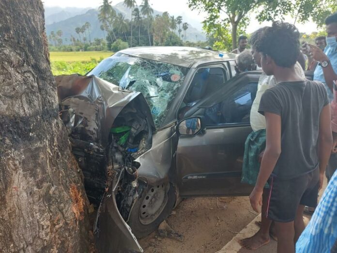 கார் தென்காசியை அடுத்த திரவியநகர் அருகே அம்பை சாலையில் சென்ற போது, சாலையோரத்தில் இருந்த நாவல் மரத்தில் பயங்கரமாக மோதி விபத்துக்குள்ளானது.